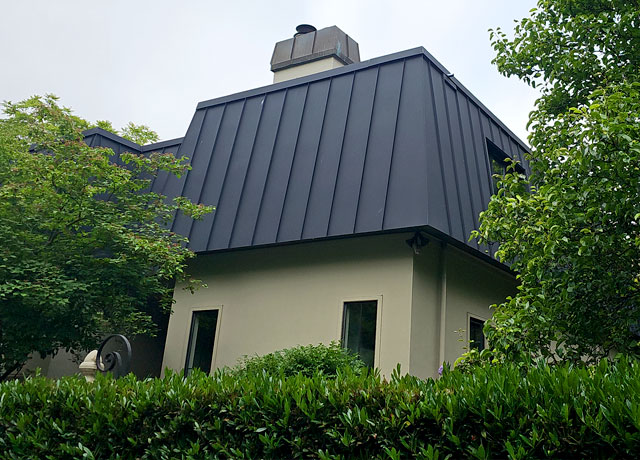 Standing seam metal roofing is a low maintenance, durable option that comes solar ready. The solar panel clicks right in! Its modern look enhances the roofline of any architectural style with dramatic shadow lines that run from ridge to eave, accenting the pitch and plane of every roof angle.